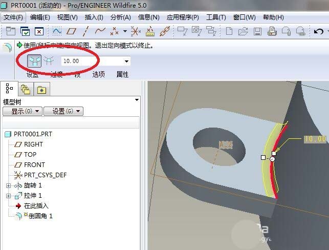 首先如下第一幅图所示,点击右边工具箱中的“倒圆角”图标,软件左上角设置半径R为10,在实体中选择边线,软件右上角点√,完成倒圆角操作。