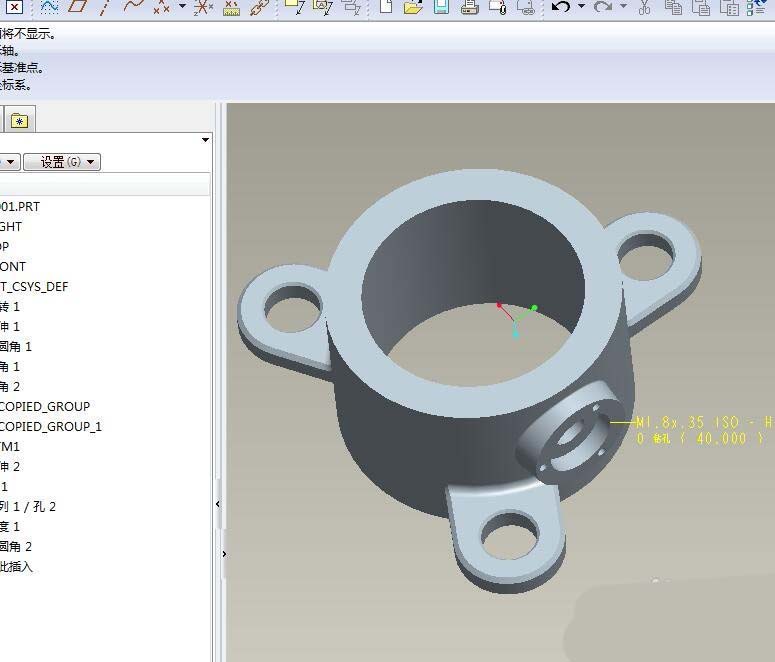 22、经过以上一系列操作,这个泵头零件模型算是创建完成了,隐藏掉所有的基准面、基准轴,就如下图所示了。