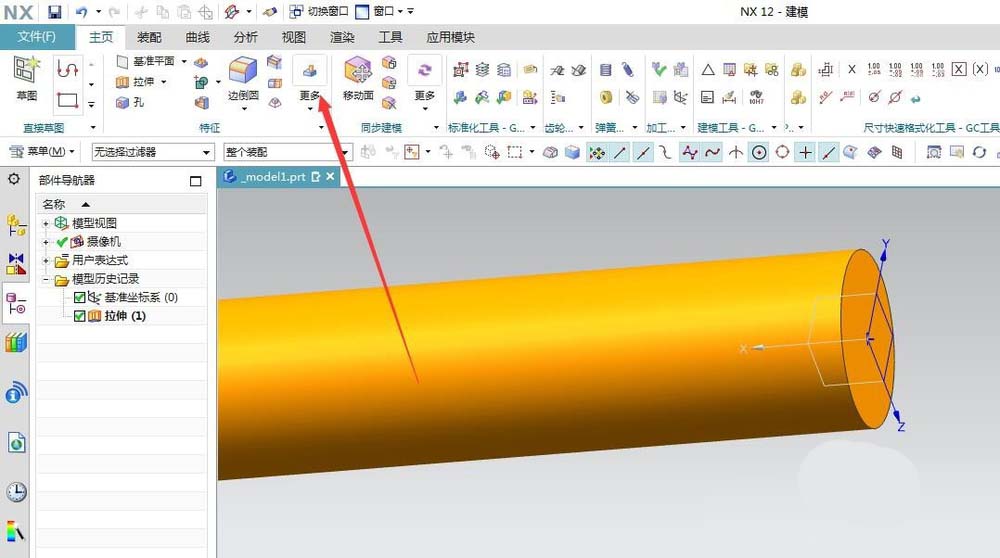 1、点击NX软件菜单命令栏特征中更多。