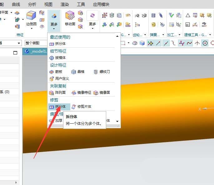 2、选择拆分体命令。