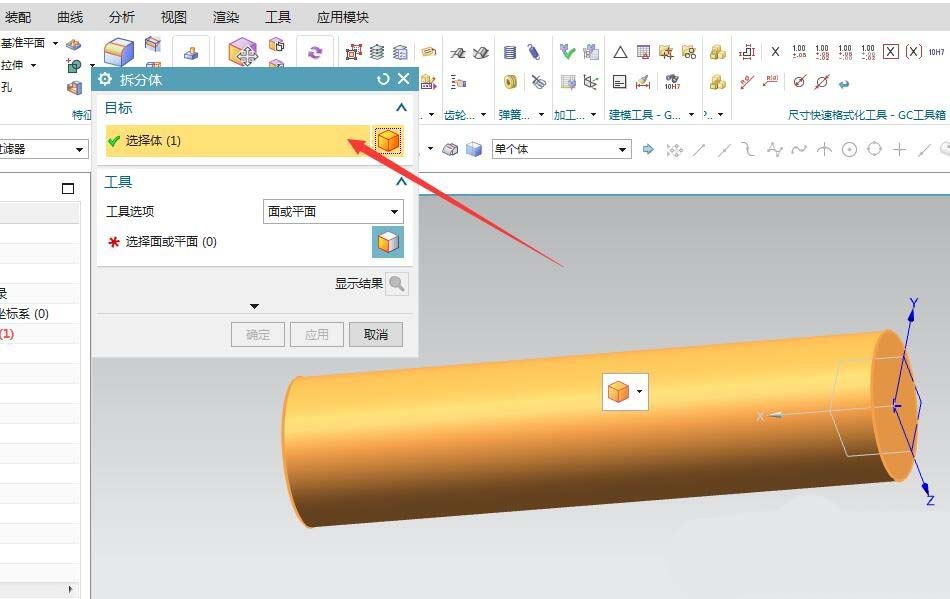 3、选择需要拆分的体。