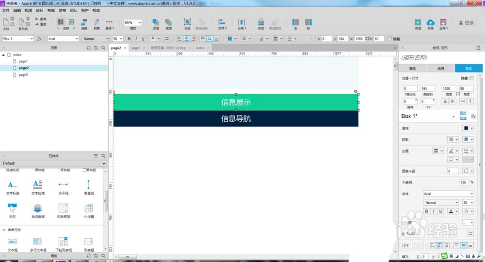 2、然后我们对元件元素的样式进行调整,并对里面的描述文字进行编写,如下图所示。