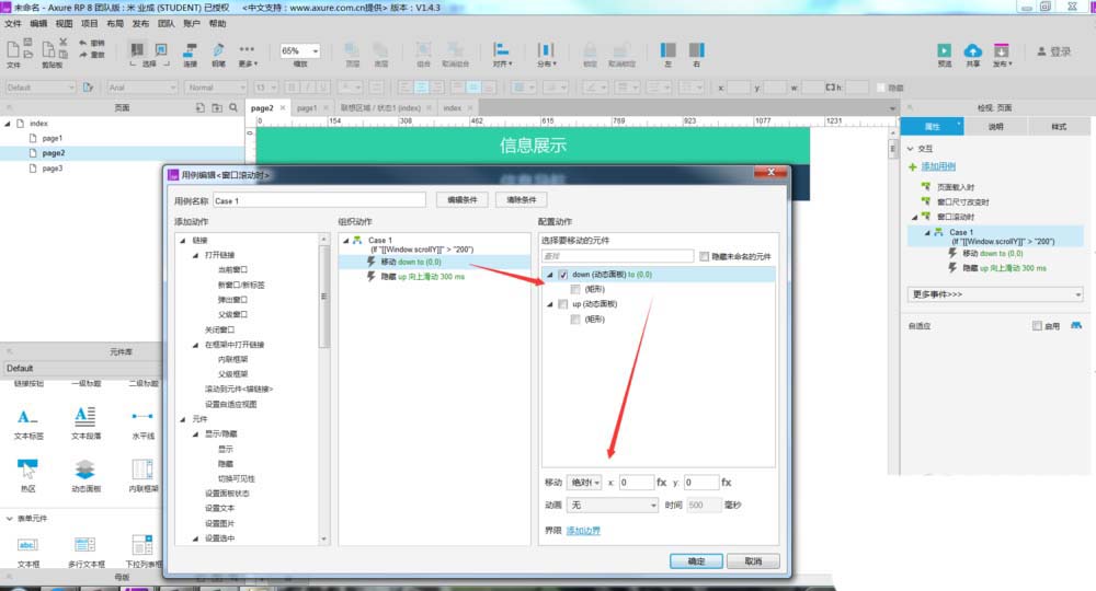 7、然后设置第一个动态面板移动的绝对位置,如下图所示。