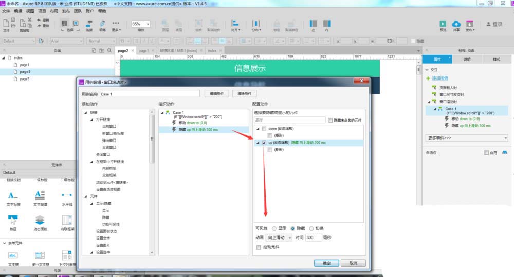 9、同上的方式,做第二个判断条件,并对两个动态面板的交互进行设置,如下图所示。