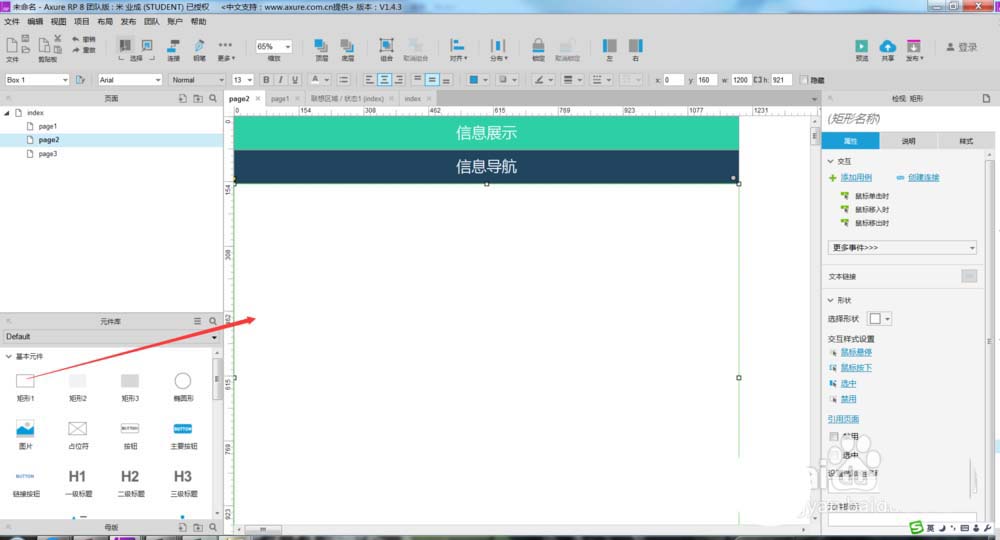 10、最后一步,因为是窗口滚动的效果,所以需要再拖入一个矩形,并将矩形拉长一些,这样浏览的时候窗口就有滚动条了,如下图所示。