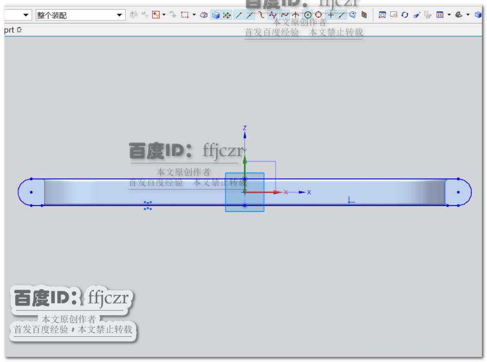 10、选用开孔命令,以XZ面为草绘平面,在草绘中绘出开孔的定位点,两点在X轴上,且相距200,如图所示。开孔类型为埋头,埋头直径为14,角度为90,通孔直径为9.确定后即可得到两个开孔的效果。模型创建完成。