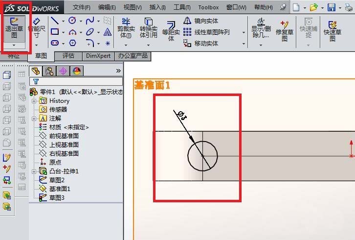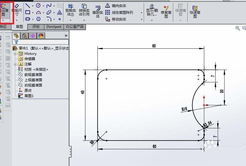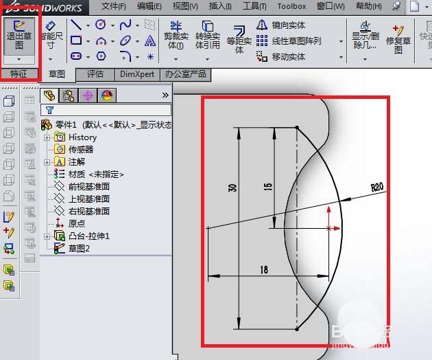 6)点击工具栏中的“退出草图”图标,完成并退出草图。