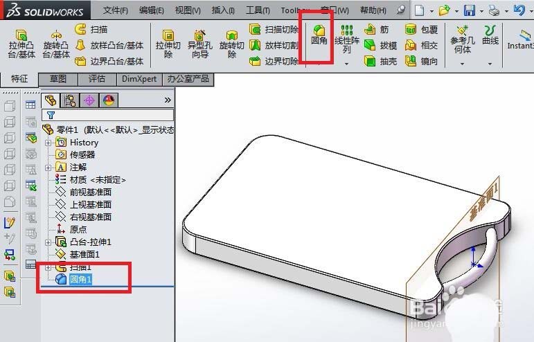 4)打√,完成圆角操作。