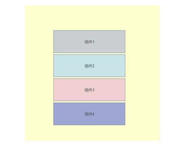 可以另复制3份”动态面:Module1“,分别命名为”Module2“、”Module3“、”Module4“,并修改其内容为“组件2”、“组件3”、“组件4”及填充色;“Module1“、”Module2“、”Module3“、”Module4“,垂直排列,组件上下之间无间隙~(间隙预留在了动态面板state1中),参考如下: