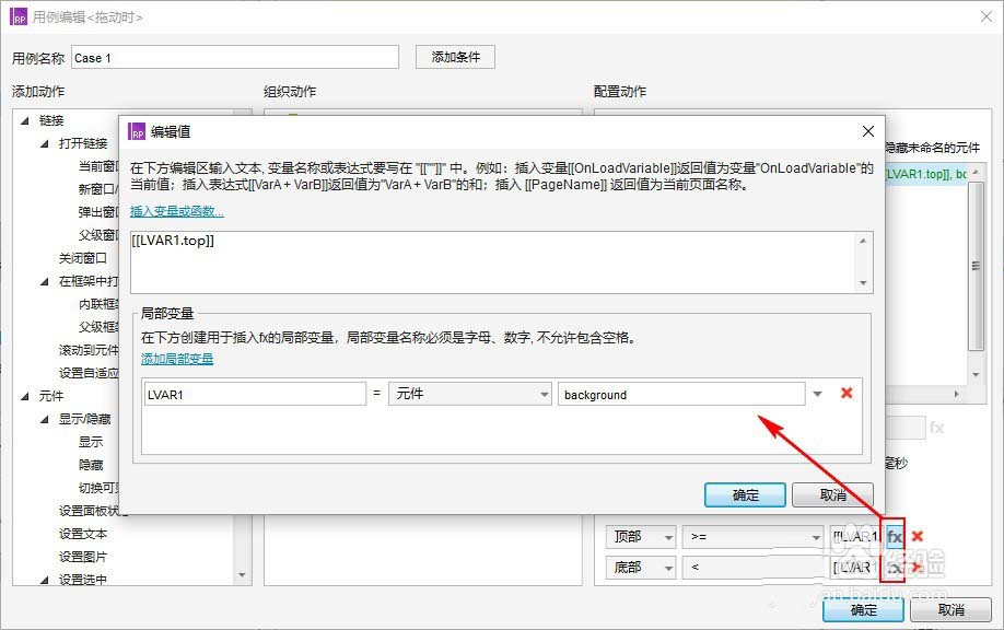 ”动态面板:组件1“的”拖动开始时“的Case1用例: