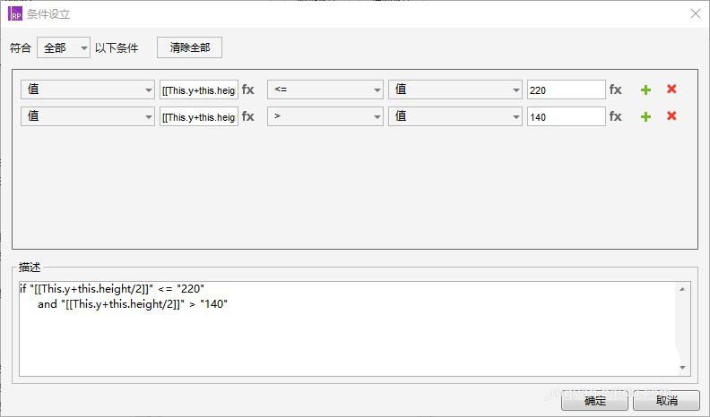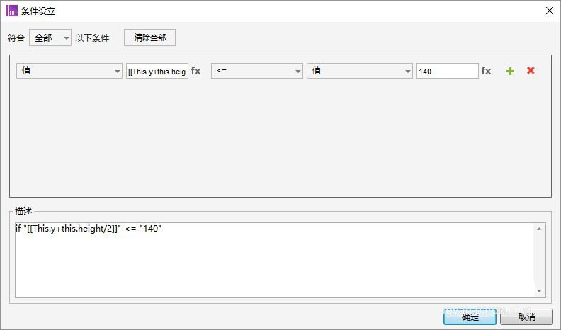 判定条件:”值:[[This.y+this.height/2]]小于等于140“