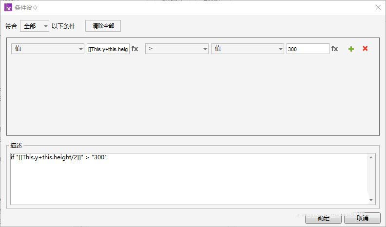 ”值:[[This.y+this.height/2]]小于等于300;“