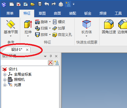 1、如下图所示,打开caxa3D实体设计2018软件,新建一个空白模板的设计环境,默认的文件名为“设计1”。