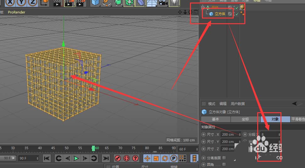 2、这样就把立体图形变成了一个框的样式,可以调节分段来增加边数,作为牢笼就出现了