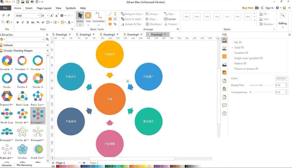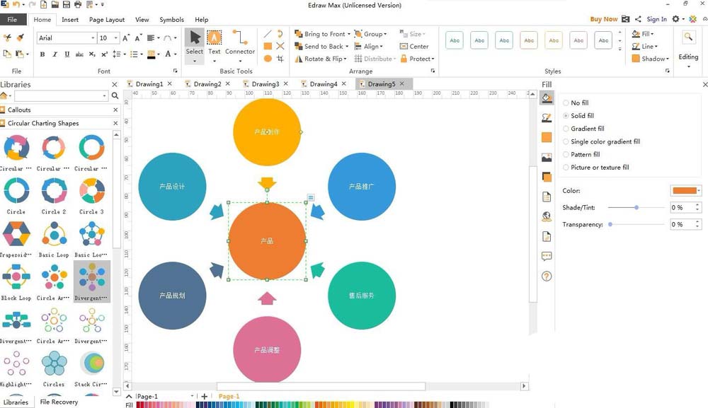 Edraw Max可以创建各种图形,今天我们就来看看亿图图示创建各种圆形图来表达信息的方法,请看下文详细介绍。