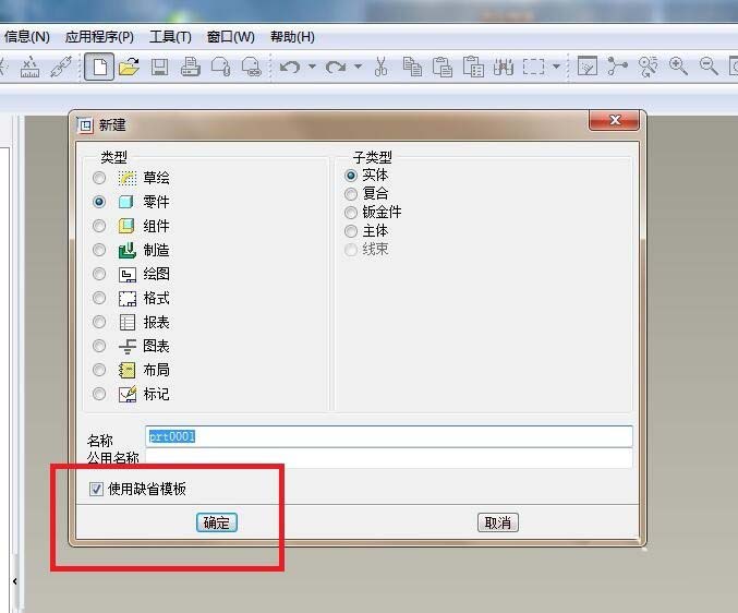 1、如下图所示,打开Pro/e5.0软件,“使用缺省模板”新建一个实体零件文件。