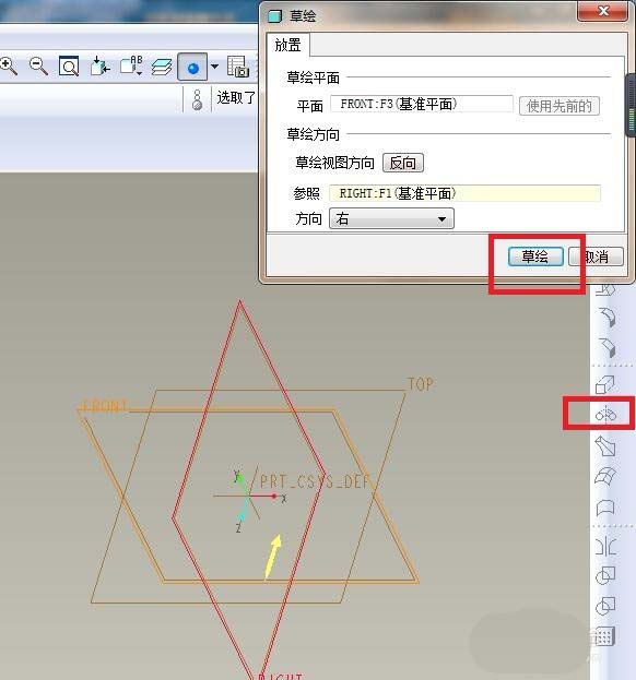 7)点击“√”,完成并退出草绘。