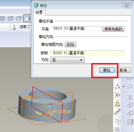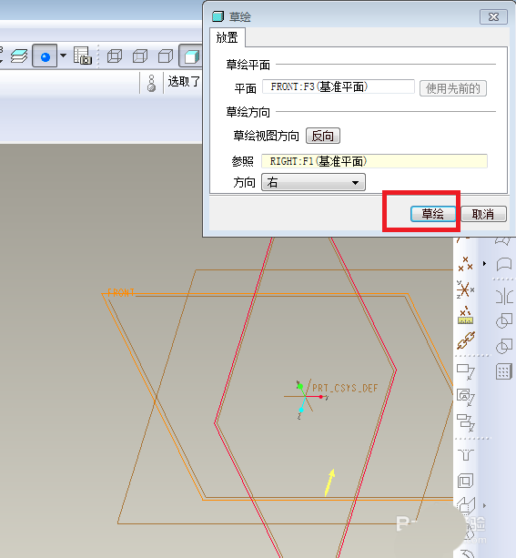 5)点击“草绘”对话框下方的“草绘”按钮。