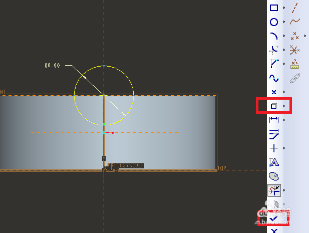 4)点击右边工具箱中的“√”,完成并退出草绘。