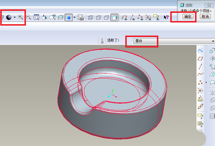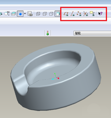 9、如下图所示,点击工具栏中红色框选中的图标,将所有的基准面、基准轴等全部隐藏。
