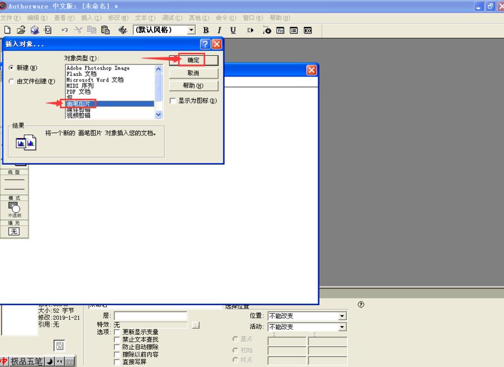 9、绘制完毕在任意一个空白处点击鼠标退出画图程序,就可以返回到Authorware中。