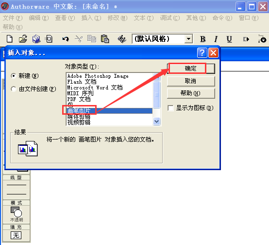 7、在Authorware中直接打开了画笔程序;