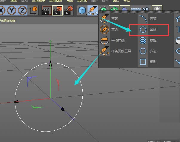 1、如图,找到圆环工具先建立一个圆环