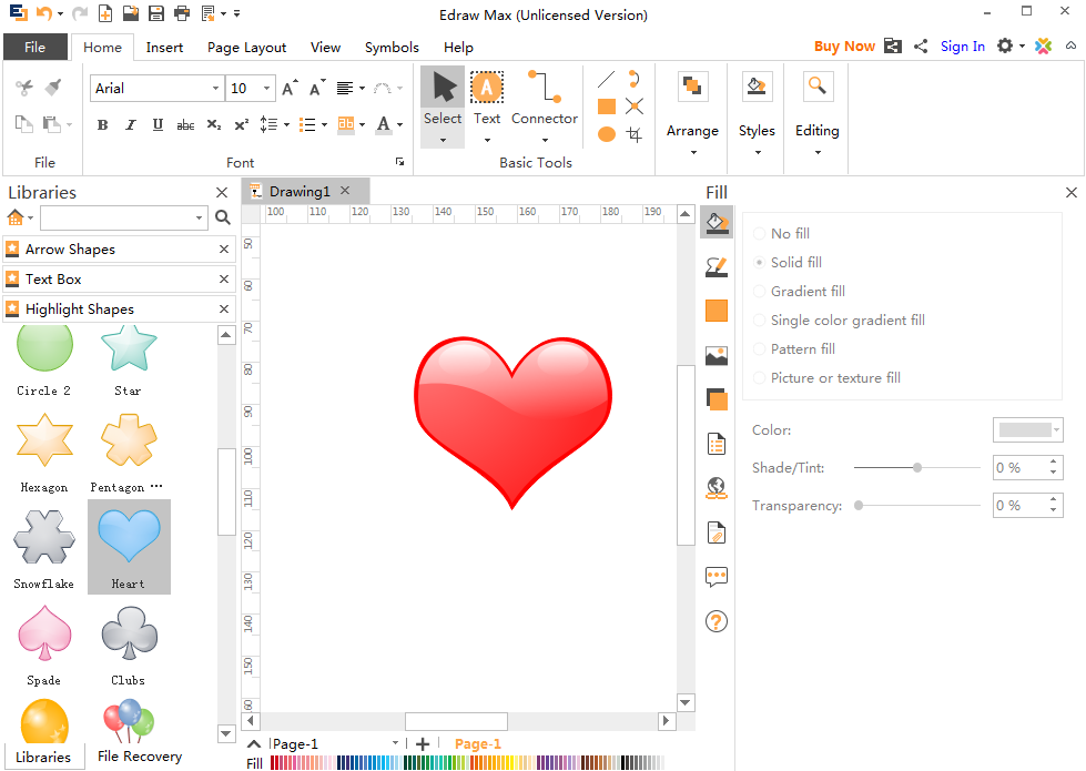 Edraw Max中可以直接插入红色的心形,该怎么插入呢?下面我们就来看看亿图图示画红色心形的的教程。