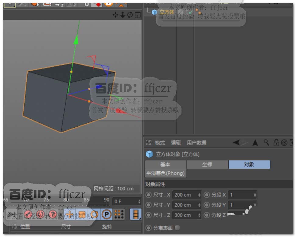 1、创建一个立方体,尺寸为200*200*300,所有分段为1.