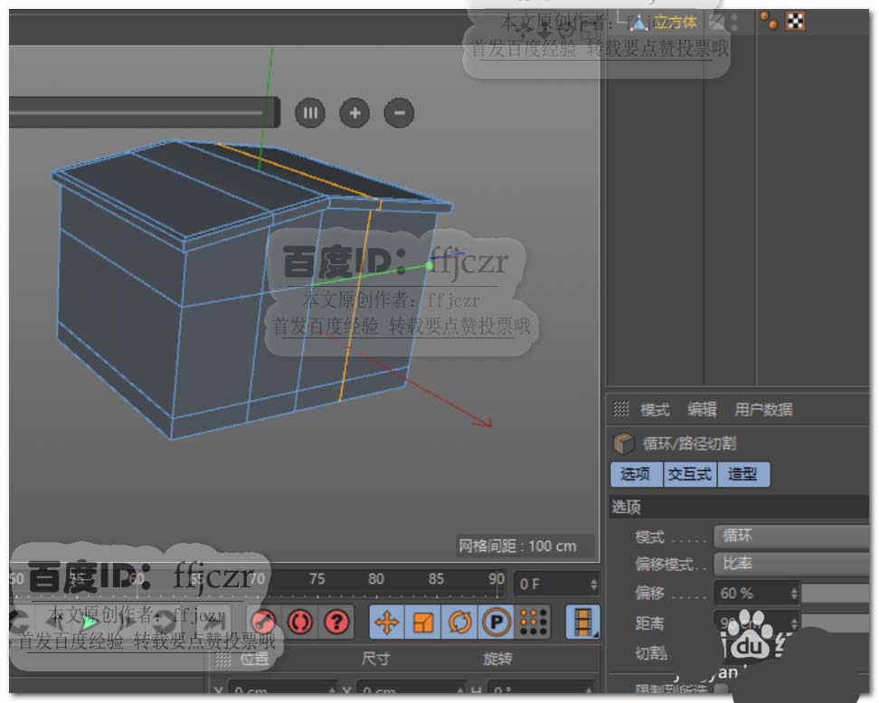 4、用循环切刀工具,对立方体添加相应的循环边;如图所示。
