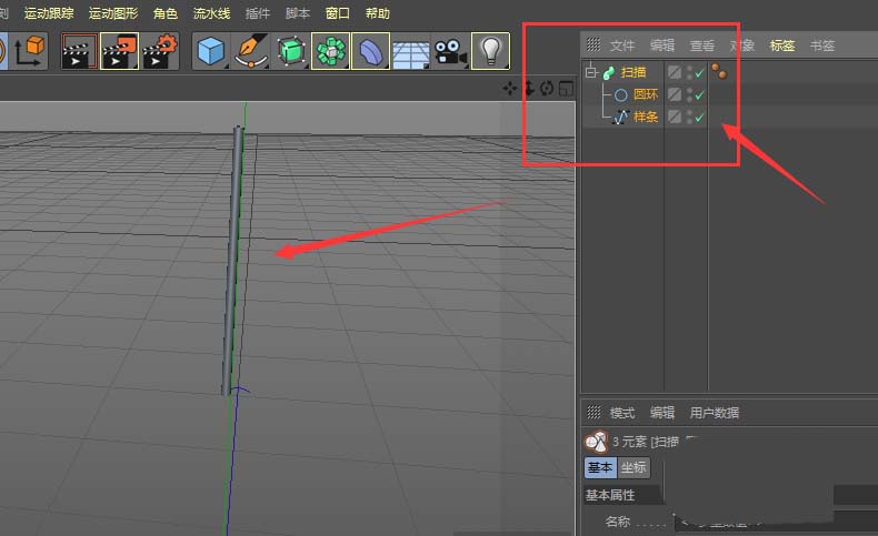2、如图,这样设置一下,就可以将刚才的样条线变成了实体的杆