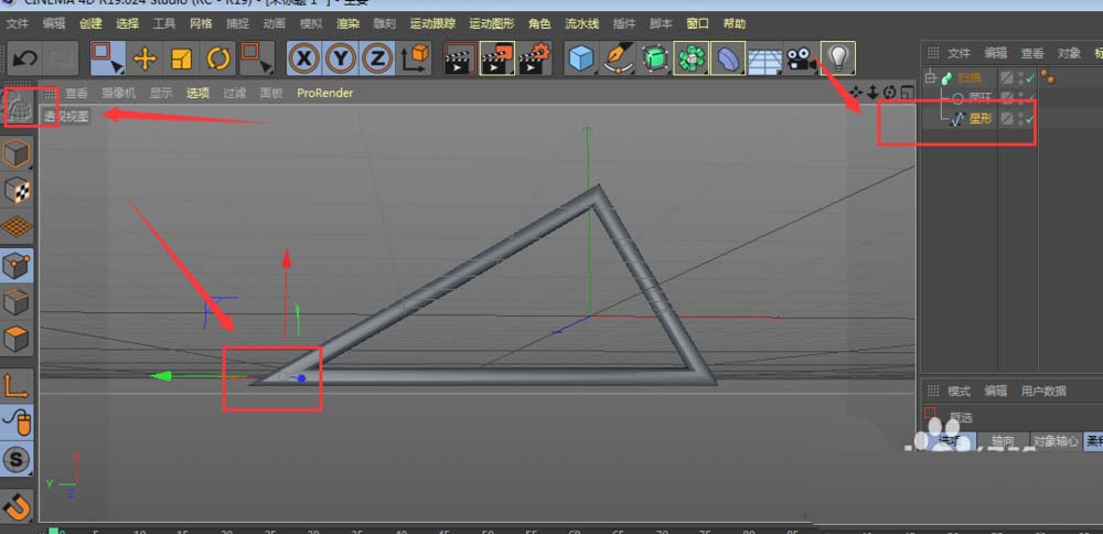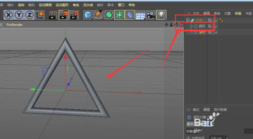 6、然后再对其添加圆环线条,并且进行扫描处理,这样同样可以做出三角尺模型效果。