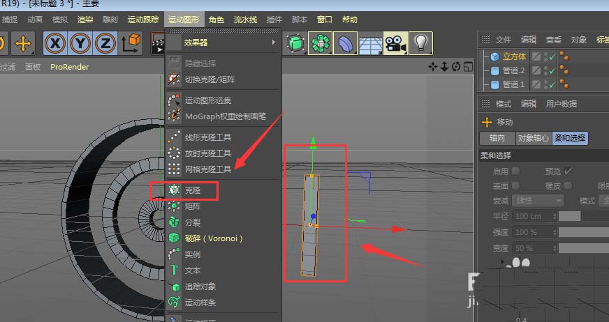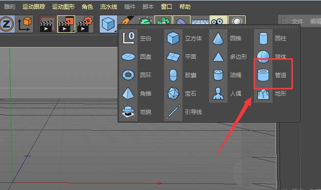 1、我们利用管道来制作滚轮的效果,如图先建立一个管道