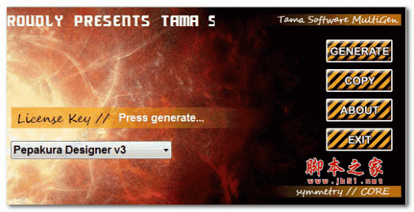 6、打开注册机,产品选择Pepakura Designer(通用),点击【Generate】生成一组注册信息,如下图: