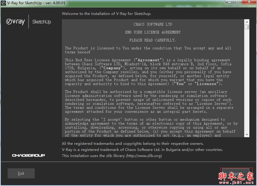8、运行安装VRay 4.00.01 for SketchUp 2016-2019顶渲简体中文包-V1.0.exe,一步步安装即可。
