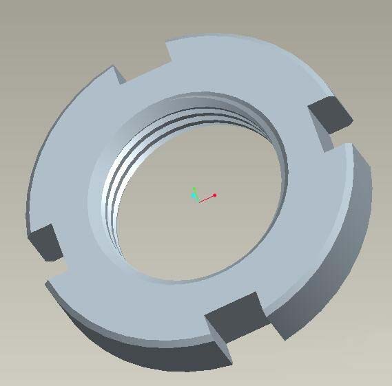 12、完成以上所有操作,GB/T 810 M18x1.5的小圆螺母就建模完成,这一步只是隐藏掉所有的基准面,如下图所示。