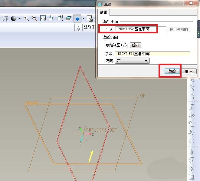 8、如下图所示,进入到草绘环境,