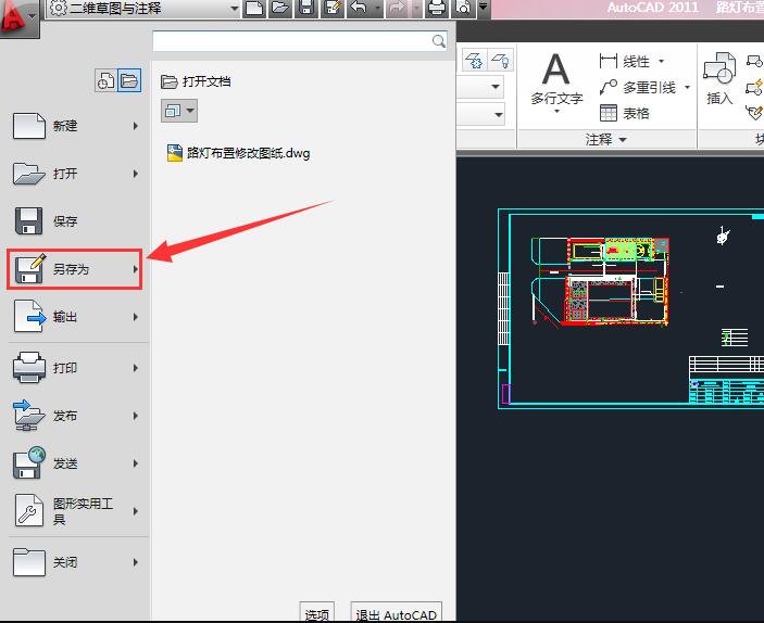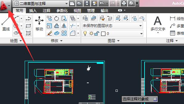 安装一个版本较高的AutoCAD软件,打开图纸文件,点击左上角的“A”,