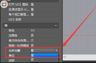 也可以使用快捷键CTRL+1,打开特性面板窗口,找到“块”,在允许分解参数下拉框选项中,选择”是“就行了。
