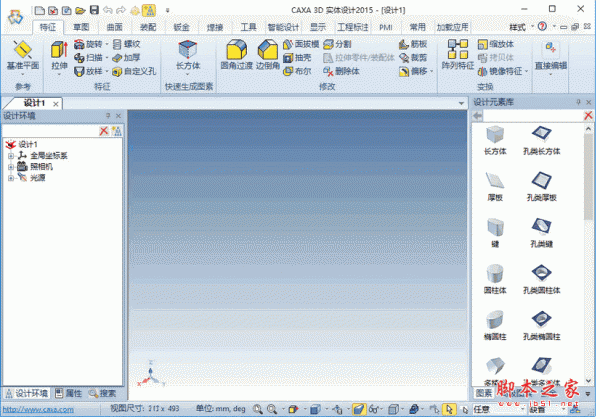 1、如下图所示,打开CAXA3D实体设计软件,新建一个新的设计环境。