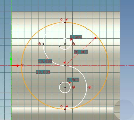 激活裁剪命令,完成最后的裁剪,一个平面太极图就好了,
