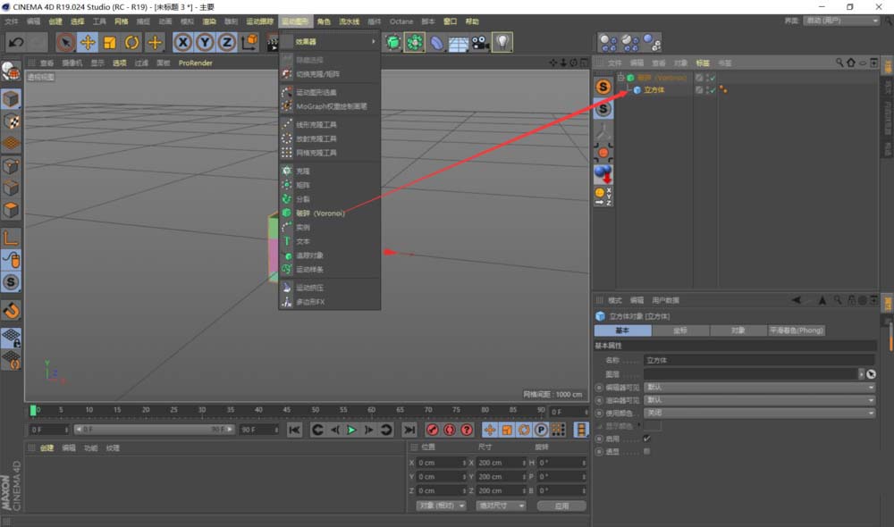 1、首先创建一个你想要破碎的物体,我这里就直接创建一个立方体好了。添加破碎效果器。
