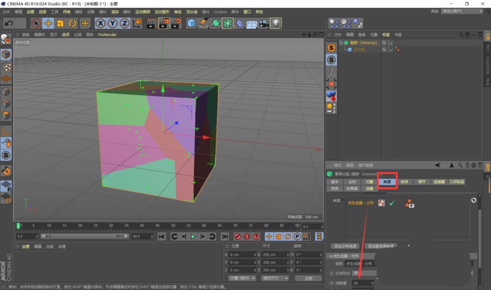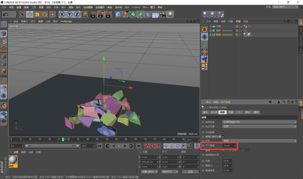 2、在来源中可以设置破碎的块数、缩放等参数;在细节中可以使物体破碎的更加自然。
