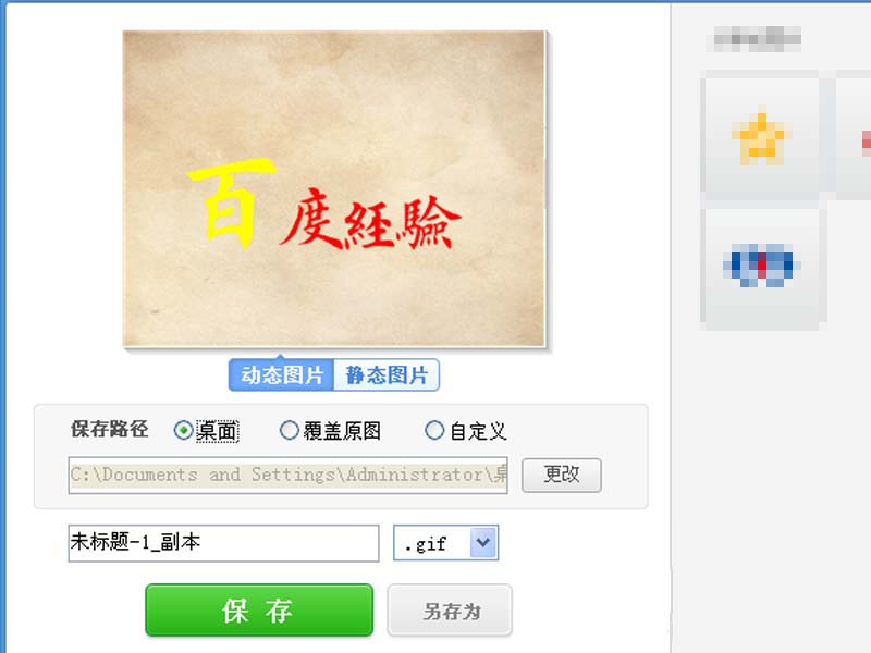 6、接着点击保存按钮,选择动态图片,保存路径为桌面,将文件保存为gif文件即可。