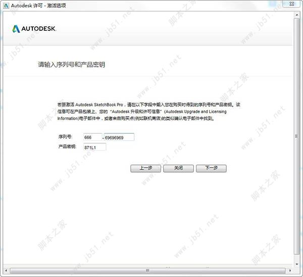 4、来到激活界面,输入下面的激活信息的,点击下一步。