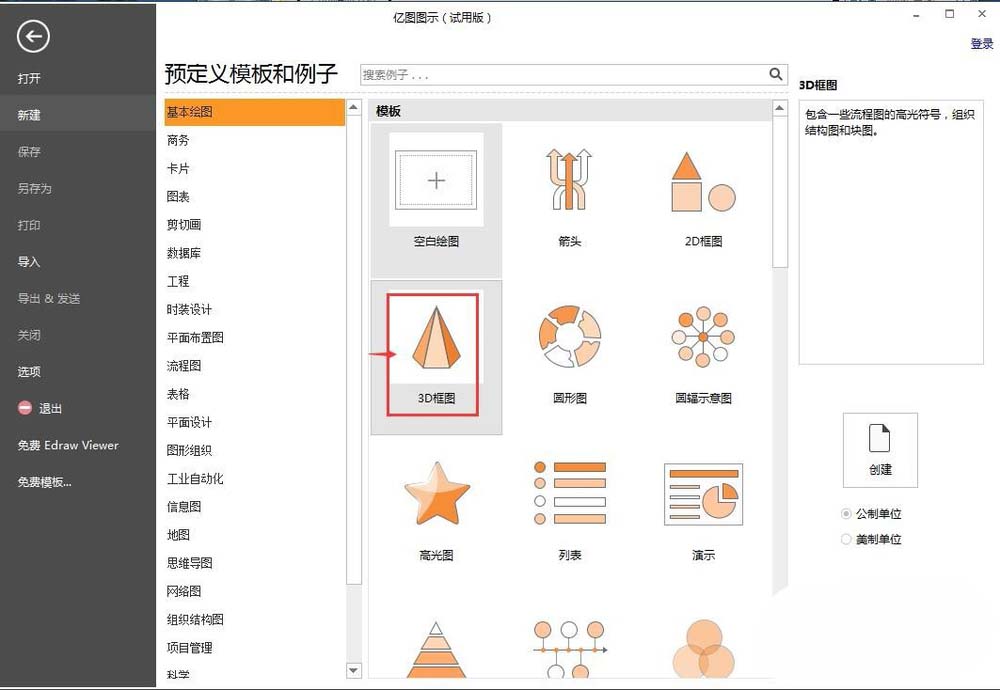 2、点击基本绘图中的3D框图;