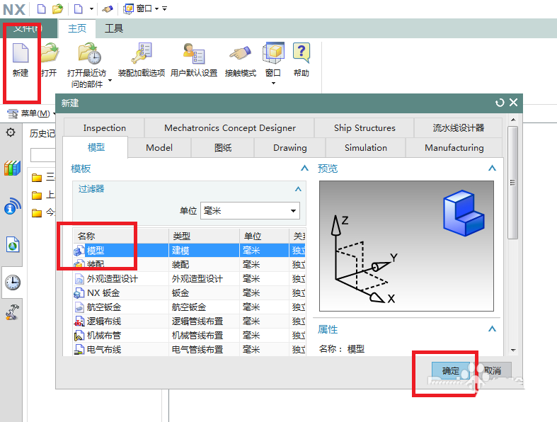 1、如下图所示,打开UG10.0软件,新建一空白的模型文件,使软件进入到三维界面。