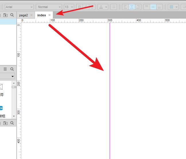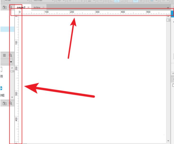 打开Axure RP软件,进入页面,可以看到上方和左侧标有尺度,