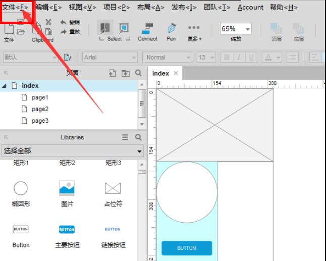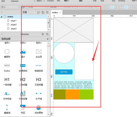 打开Axure RP软件,将做好的原型图放在坐标为(0,0)的位置,否则,上方留出的白边会随之一起导出,