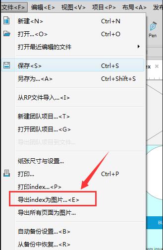 如图,在当前文件下点击菜单栏的文件——导出index为图片,我这里是index页面,所以显示Index;如果你在其他页面中导出,就会显示当前的选项设置栏,